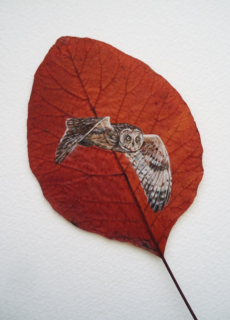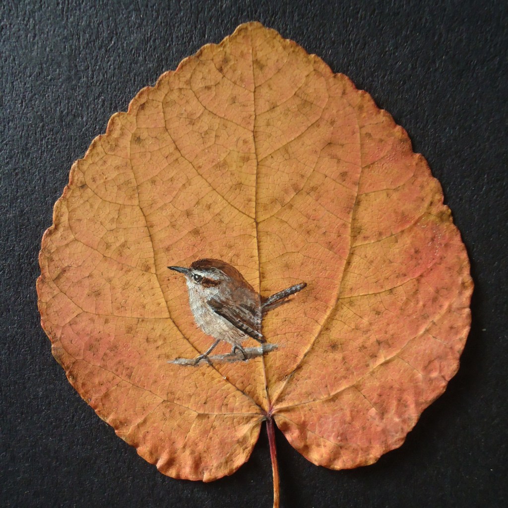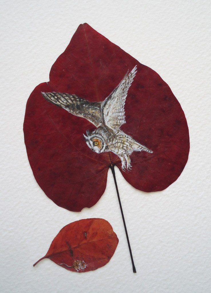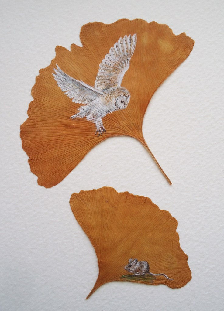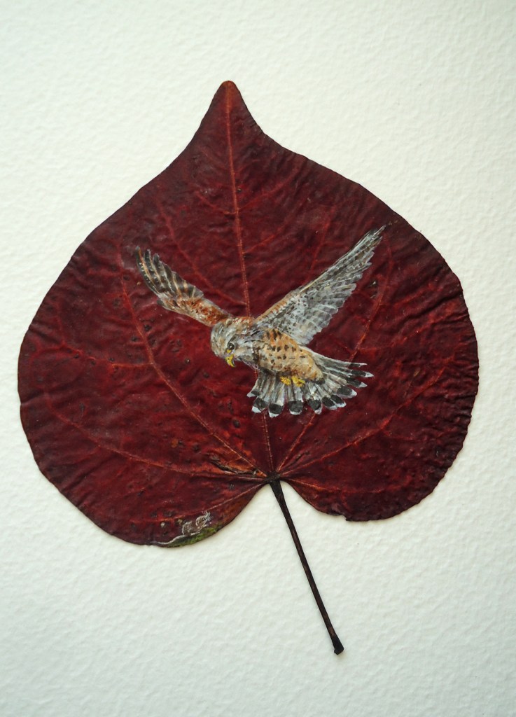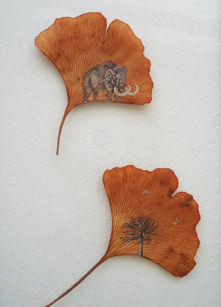 These miniatures are painted on leaves that I’ve collected and pressed. Cercis, Gingko, Cercidiphyllum and Cotinus are favourites. They are displayed in double sided glass frames. Several of these are for sale (see my Shop page)
