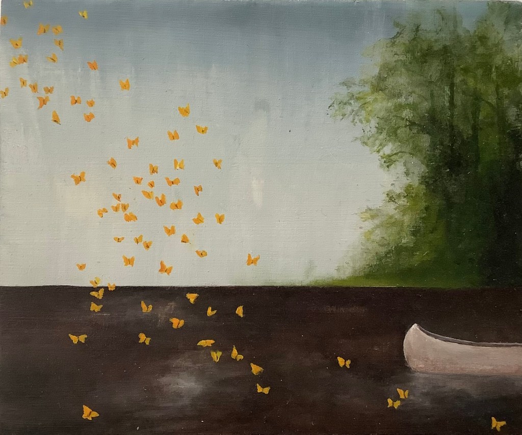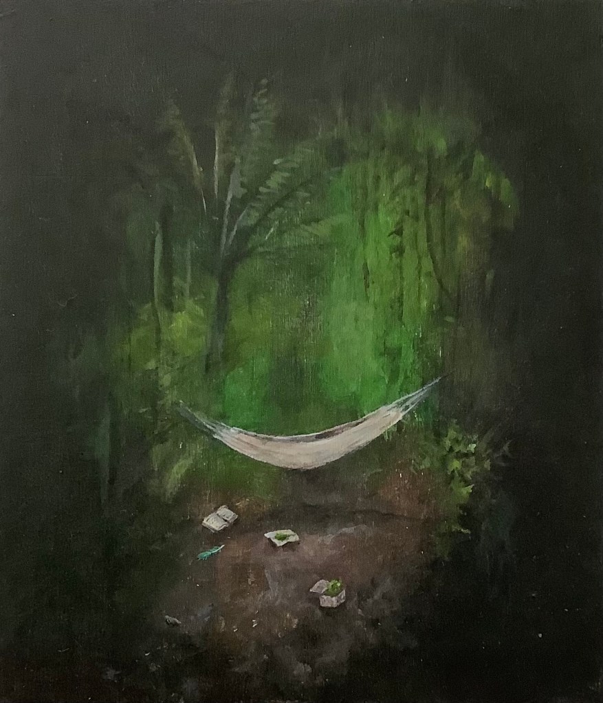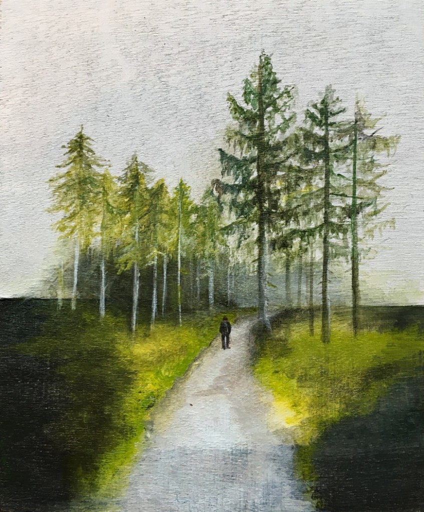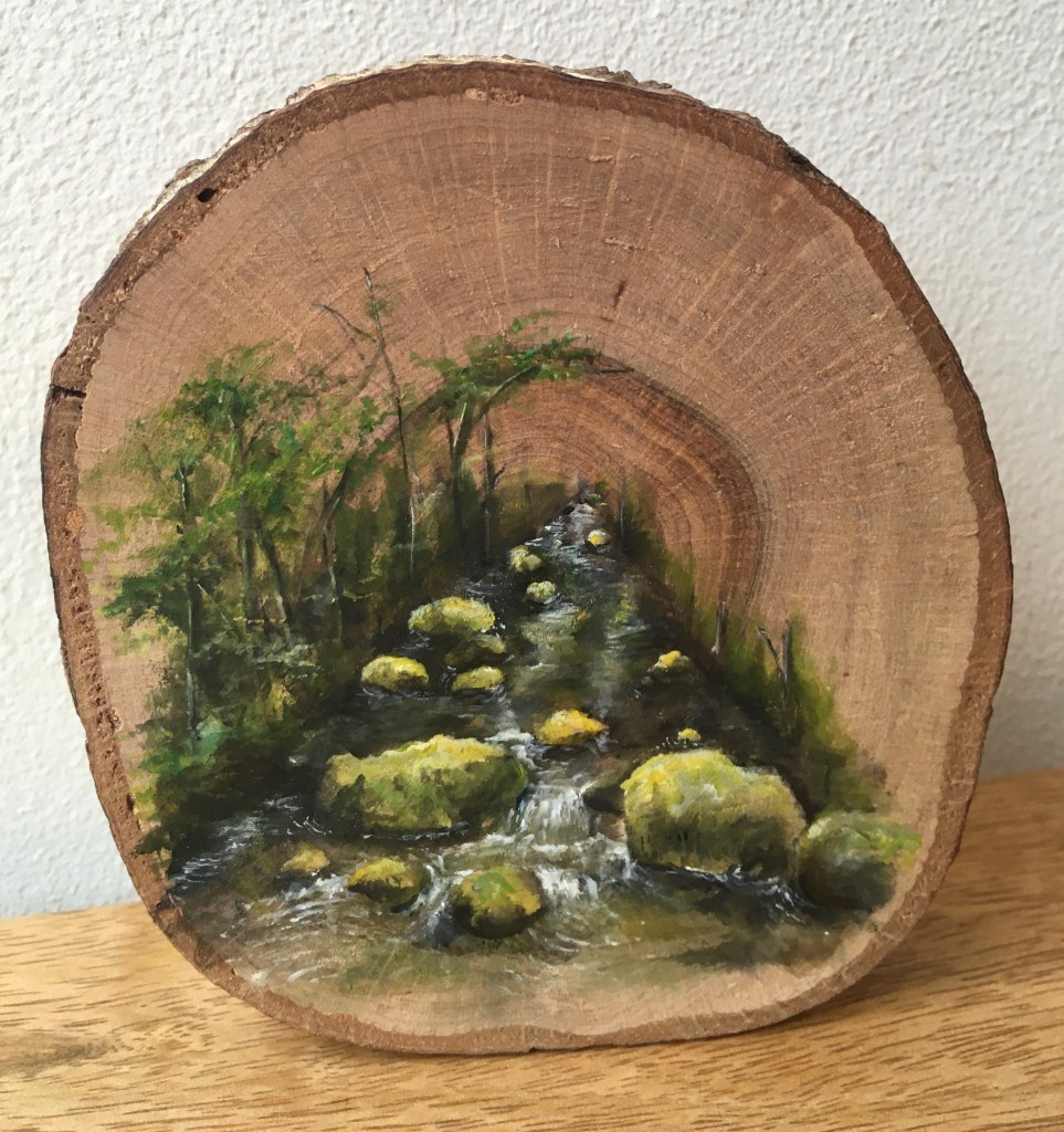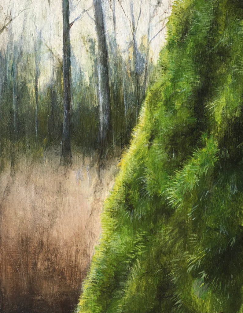 These paintings are part of a collaborative project with poet and friend Penny Boxall. The paintings run alongside Penny’s poems, which are inspired by the Victorian botanist and plant hunter Richard Spruce. His obsession with moss led him to intrepid explorations in the Amazon rainforest where he met with amazing natural phenomenons, unknown indigenous tribes, illness, loneliness and a plethora of beautiful mosses. All paintings are acrylic on board and no more than 12cm x 12cm in size.