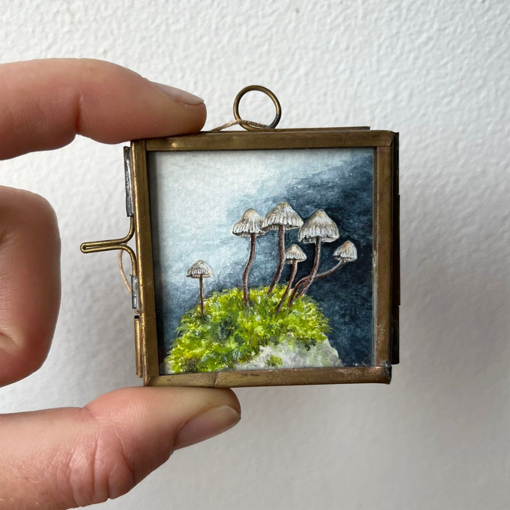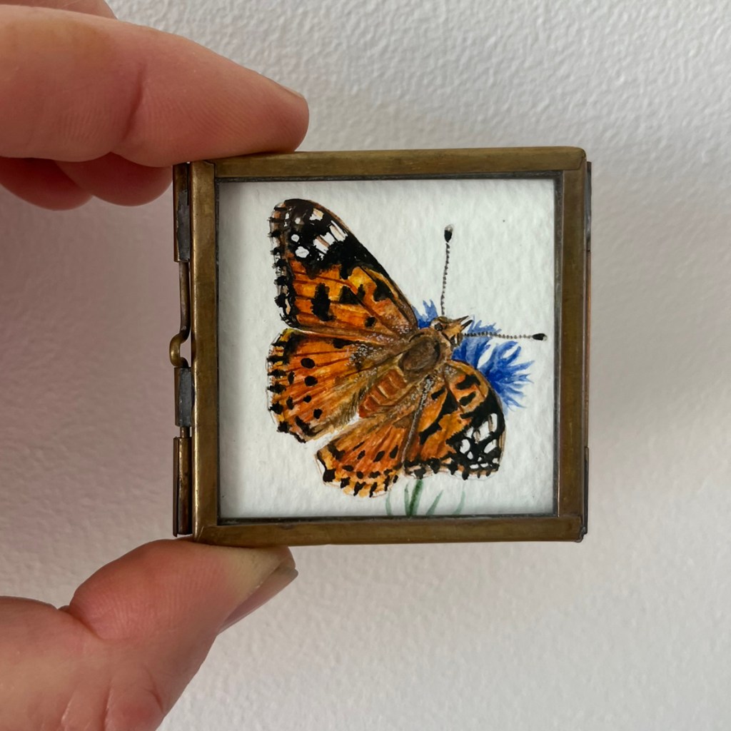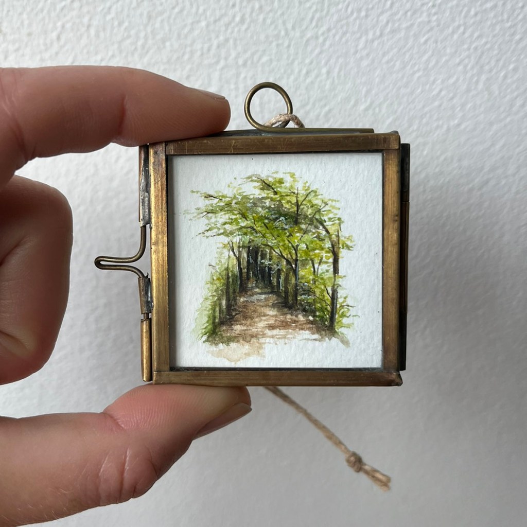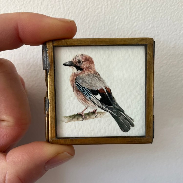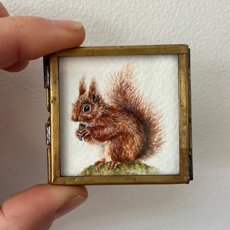 My miniature watercolours are displayed in tiny brass frames 5.2cm x 5.2cm (including frame) and signed on the back. To purchase, please email me with your details and which items you would like to order. Alternatively purchase via my Etsy shop HERE.