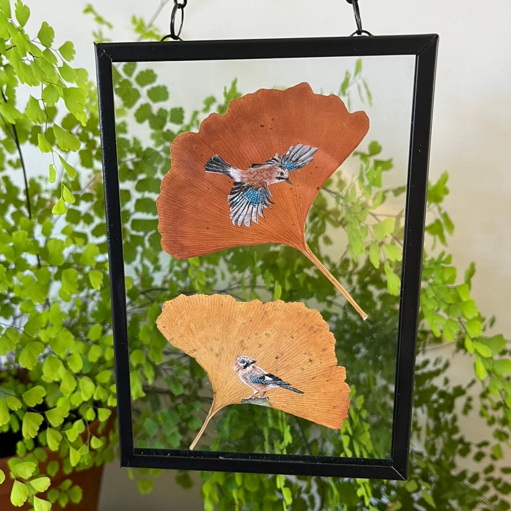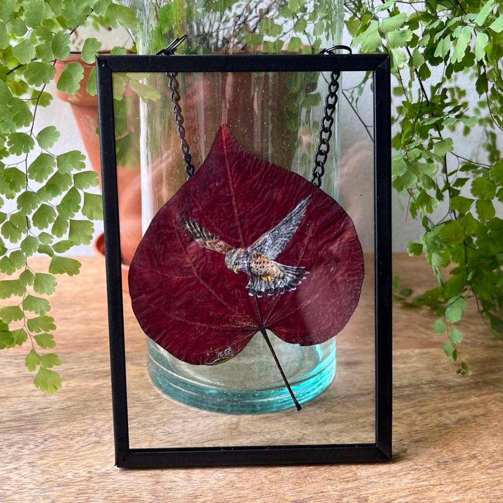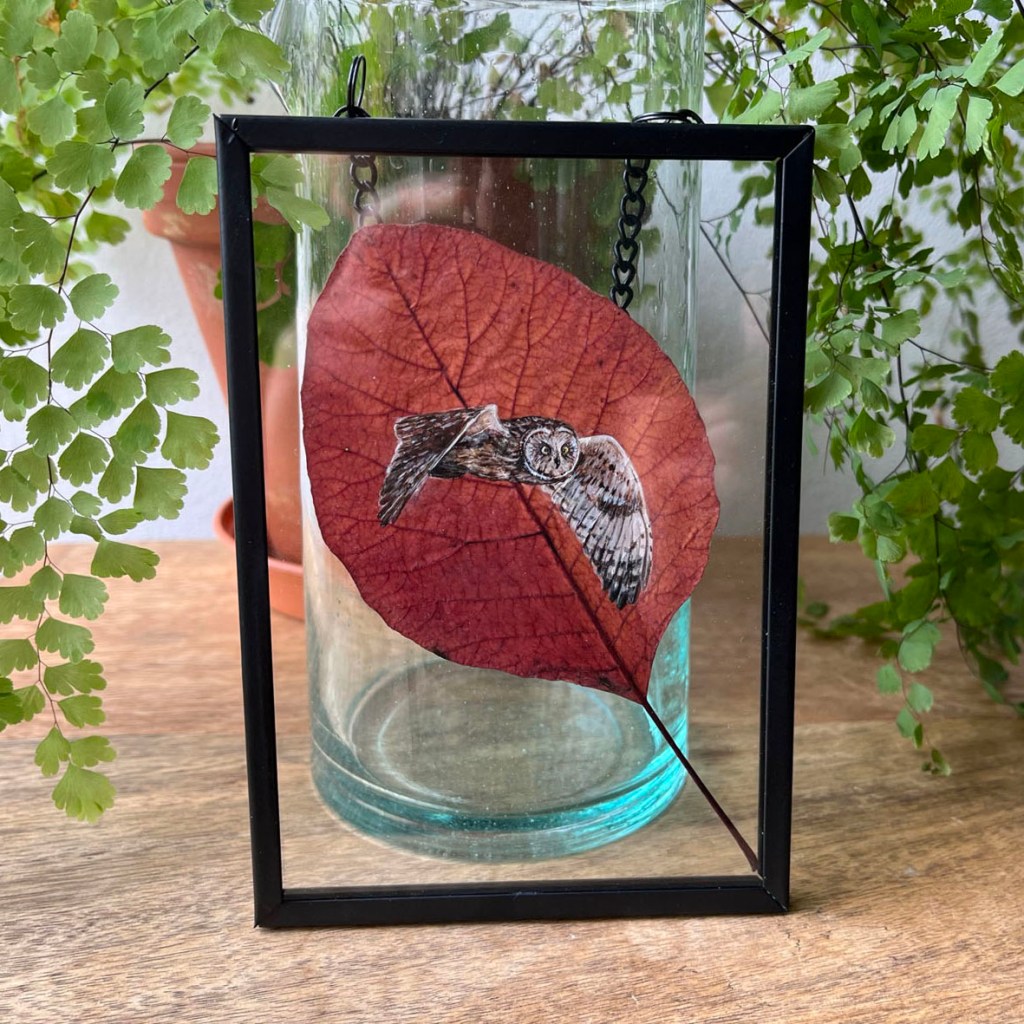 These miniature artworks are painted on real pressed leaves that I have collected over the years and displayed in A6 hanging metal frames. To order please email me with your details and which paintings you would like to purchase. Alternatively buy via my Etsy shop HERE