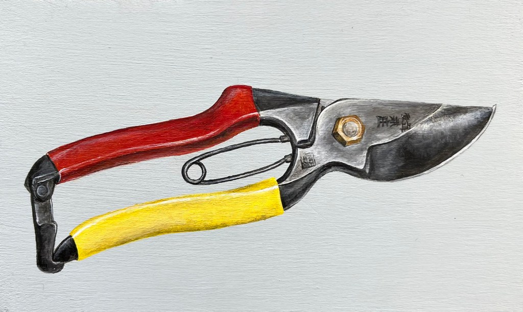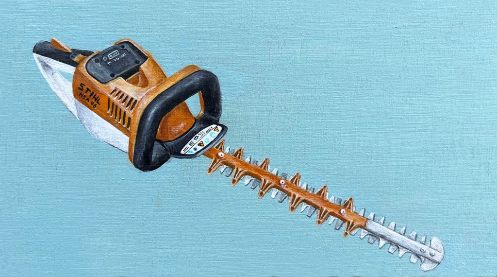 These miniature tool paintings are a slight deviation from my normal theme! My partner is a gardener and loves tools, so I painted a few favourites from his precious collection. By far the hardest things I’ve ever painted – they were truly a labour of love. They are all acrylic on plywood and average 11cm x 11cm or 13cm x 8cm. I have a selection of postcards available of these paintings (see my Shop page)